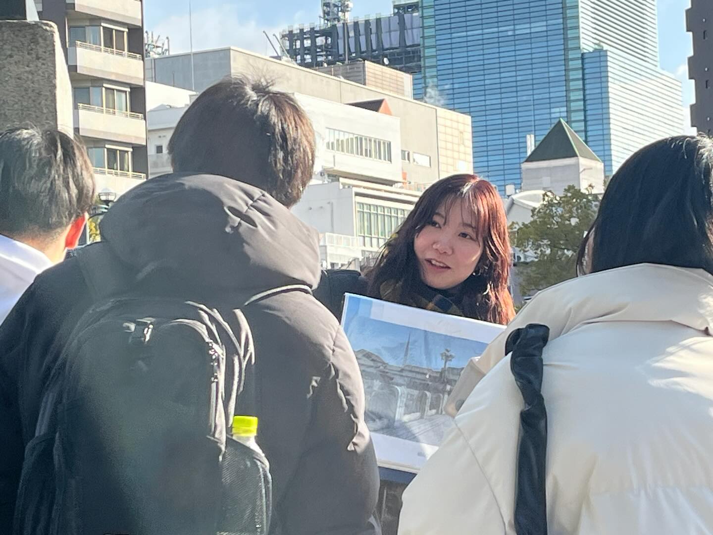 元気な生徒さんも多く、元安橋を一緒に眺めながら、「あの橋の欄干に『元』がデザインしてあるよ」とピースバディが指を差すと、「おお〜」と楽しそうに反応してくれる様子が印象的でした。ツアーの前半は、賑やかだった中島地区のことを一緒に想像する時間です。