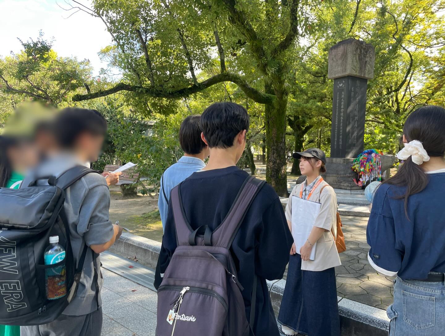 10月に入って初めてのツアーは、茨城県立牛久栄進高等学校のみなさんと。まだまだ暑さが残る中、影を探しながら一緒に平和公園を歩いていきました。